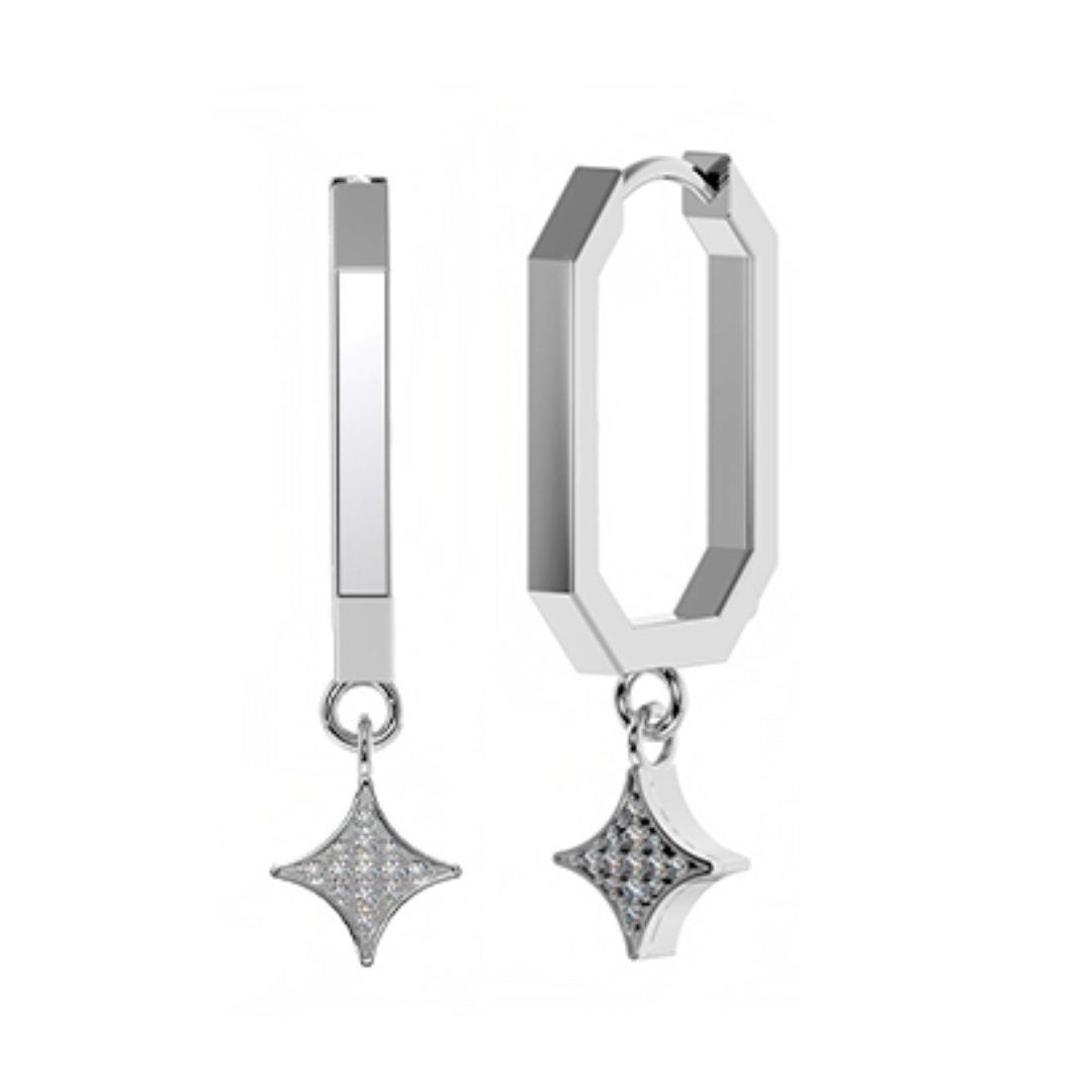 עגילי חוליה עשויים זהב 18 קראט ומשובצים ב-26 יהלומים נוצצים, המעוטרים בצ’ארם התחדשות ייחודי ובעל משמעות עמוקה.