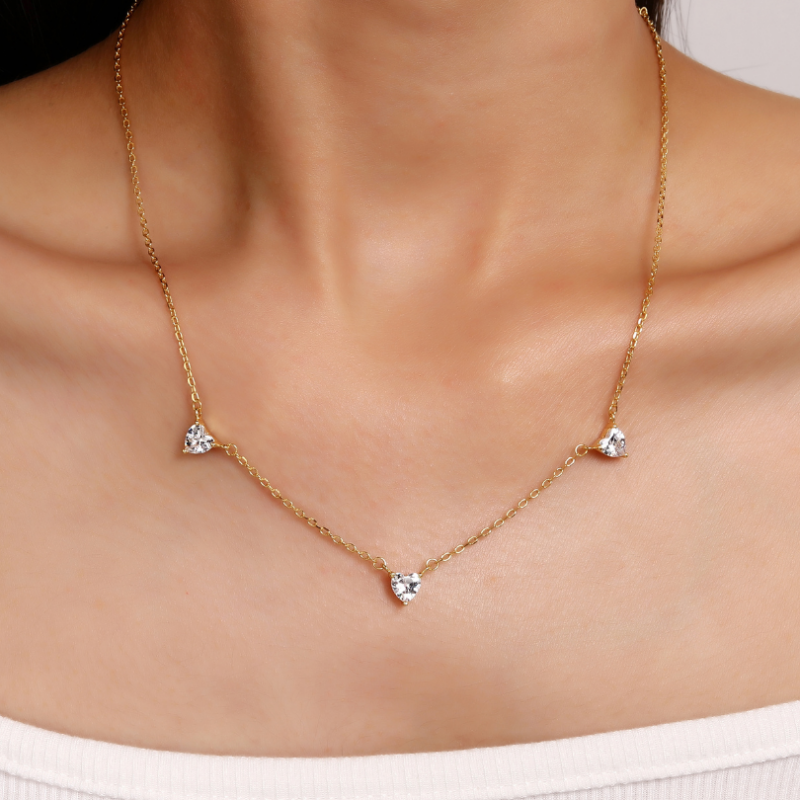 שרשרת 925 מצופה ב 18 קראט זהב לבן ומשובצת בשלושה לבבות מנצנצים.